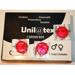 Preservativos unilatex,natural o fresa en cajas de 144uds y cajones de 50 cajas (7200 uds) PVP por cajones de 50 cajas naturales 460€ PVP por cajones de 50 cajas fresa 480€ PVP por caja suelta natural 15€ PVP por caja suelta fresa 16€ NO INCLUYE IMPUESTOS NI TRANSPORTE